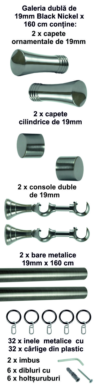 Categorii: 19mm, Black Nickel, Kituri Galerii Metalice - cu inele, Kituri Galerii Metalice 19mm - cu inele, Kituri Galerii Metalice Duble 19mm - cu inele, Noutati