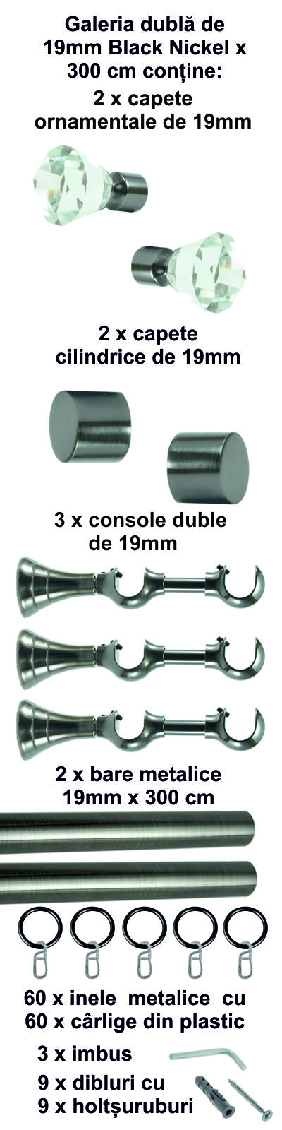 Categorii: 19mm, Black Nickel, Kituri Galerii Metalice - cu inele, Kituri Galerii Metalice 19mm - cu inele, Kituri Galerii Metalice Duble 19mm - cu inele, Noutati