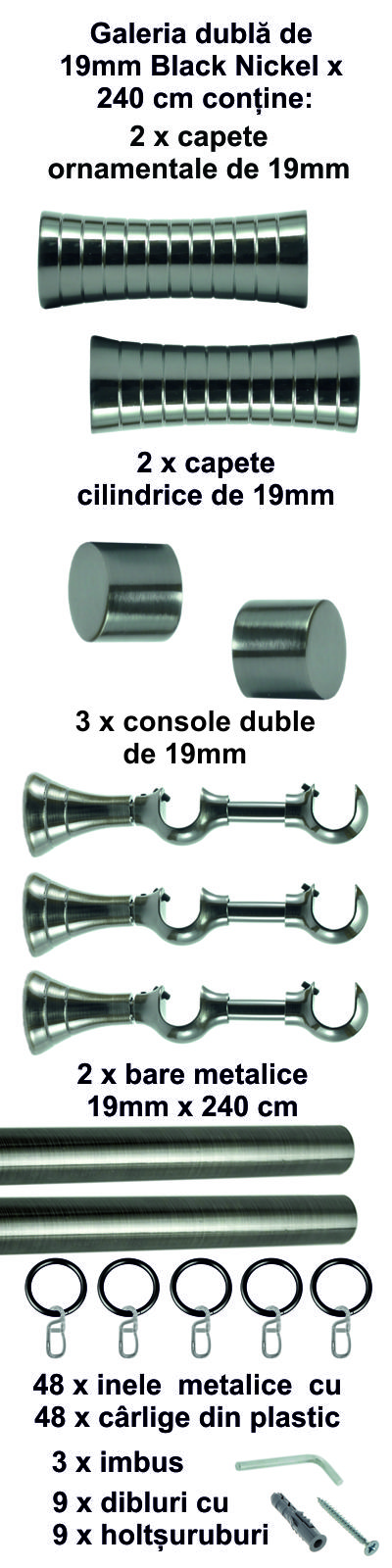 Categorii: 19mm, Black Nickel, Kituri Galerii Metalice - cu inele, Kituri Galerii Metalice 19mm - cu inele, Kituri Galerii Metalice Duble 19mm - cu inele, Noutati